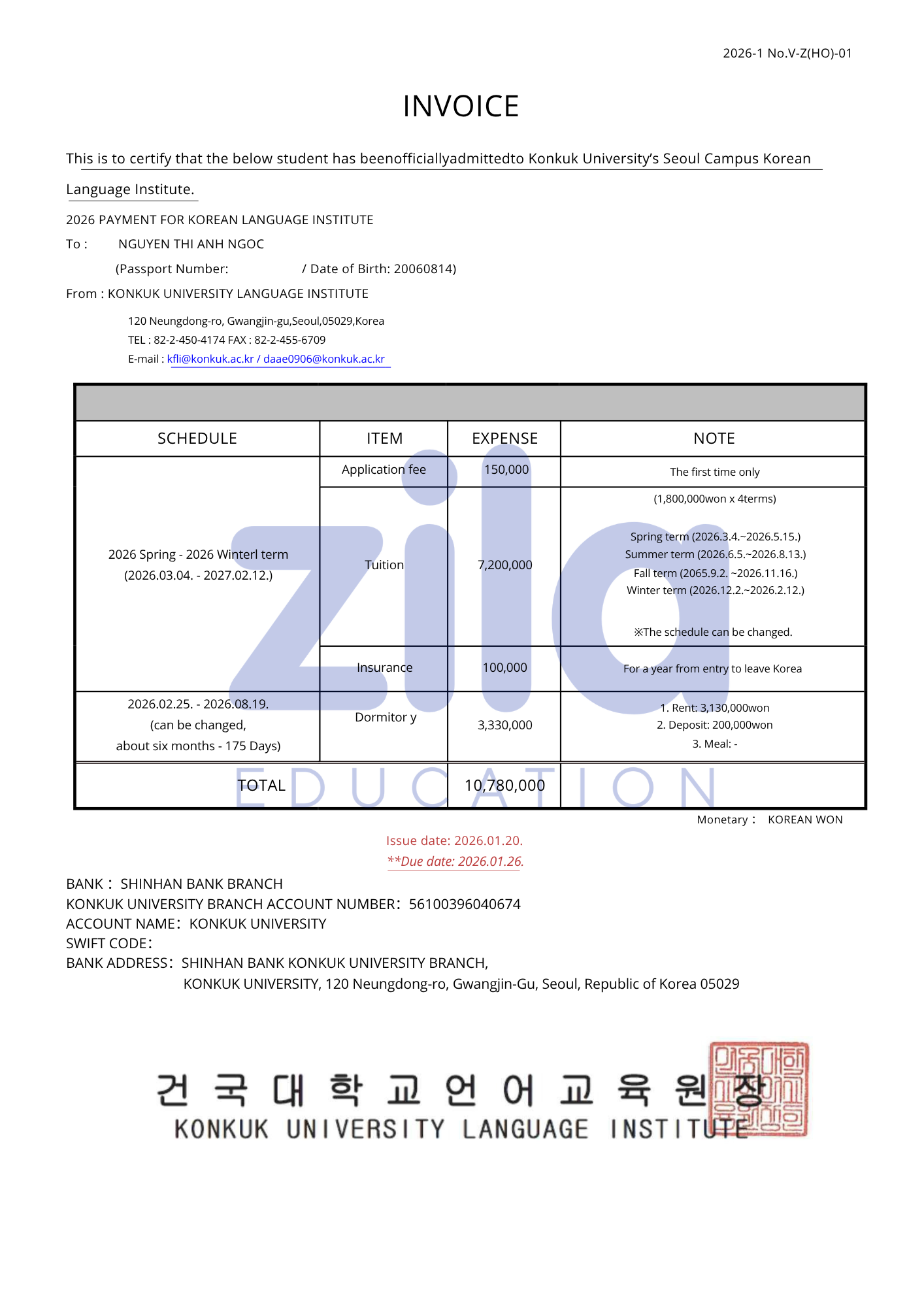 INVOICE TRƯỜNG ĐẠI HỌC KONKUK
