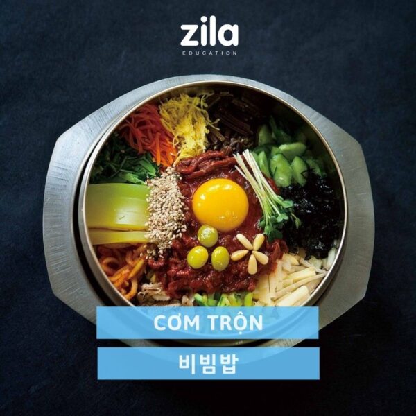 Đây là món ăn truyền thống của Hàn Quốc khá đơn giản nhưng hương vị và màu sắc lại rất hấp dẫn. Bibimbap có rất nhiều biến thể. Những nguyên liệu chính thường bao gồm: cơm trắng, rau củ (dưa chuột, cà rốt, giá đỗ,…), thịt cắt lát nhỏ và trứng lòng đào. Trộn đều cơm và ăn khi còn nóng hổi kèm với sốt gochujang (tương ớt) sẽ làm món ăn này thêm phần hấp dẫn.