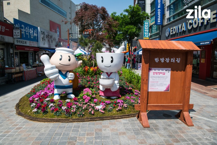 Là di tích văn hóa dân gian của Hàn Quốc, ngôi làng nằm ngay giữa lòng thành phố Daegu với nét cổ kính đặc trưng của thành phố Daegu. Đây là một địa điểm hấp dẫn rất nhiều du khách bởi nét đẹp cổ kính của những con hẻm, những bức tường đá xen lẫn những bông hoa hay những ngôi nhà cổ ở nơi đây. Nếu có cơ hội đến Daegu, bạn đừng bỏ lỡ địa điểm này nhé.Chợ buôn thảo dược Daegu (대구 약령시)