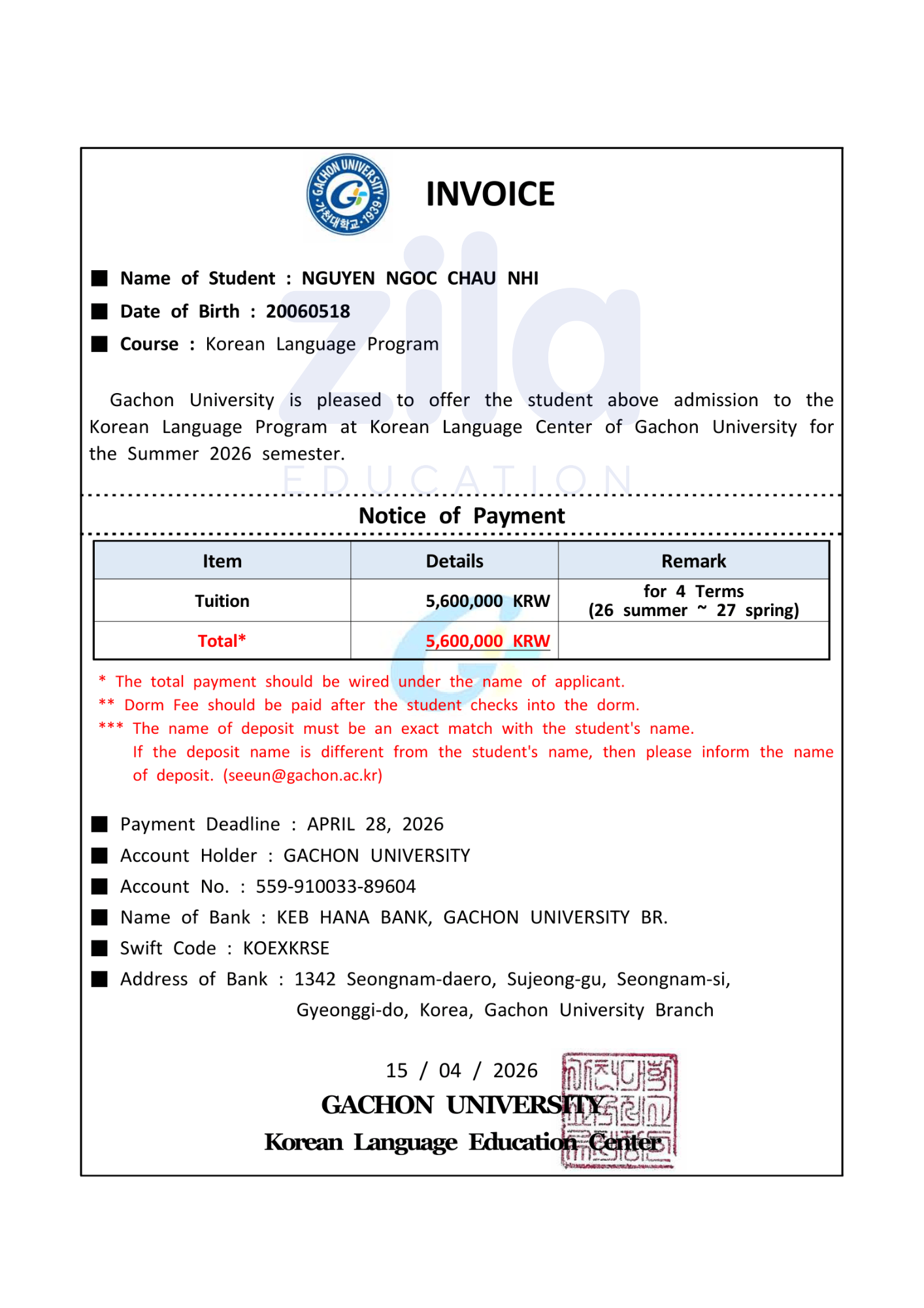 Nếu bạn có ý định nhập học tại trường Đại học Gachon Hàn Quốc Đăng ký tư vấn ngay để Zila có thể hỗ trợ bạn mọi thông tin du học tại trường nhanh nhất. |