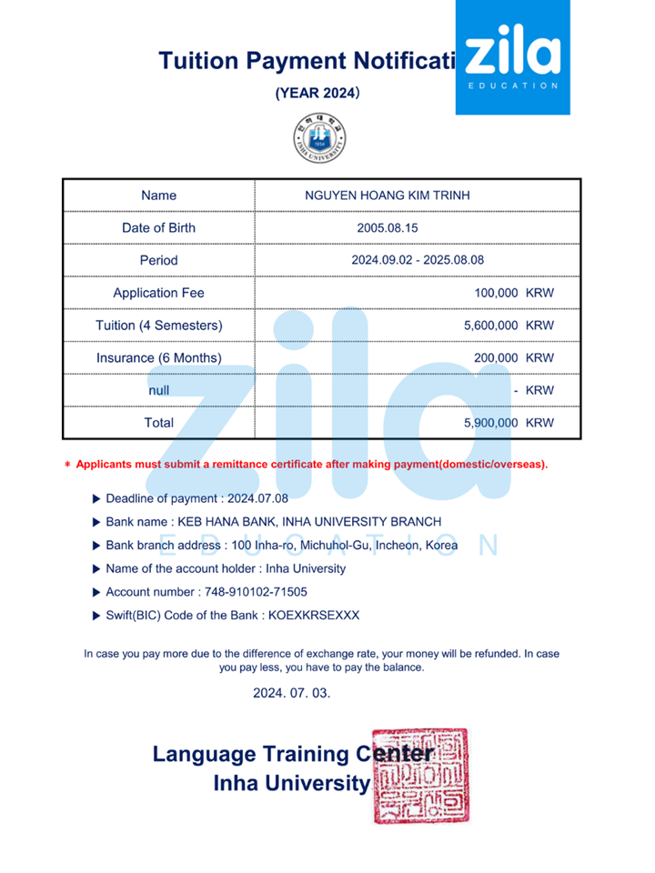 Hiện Zila đang là đối tác tuyển sinh cho trường Đại học Inha tại Việt Nam Hãy đăng ký tư vấn để Zila hỗ trợ bạn mọi thông tin nhập học và chính sách ưu đãi về trường. |