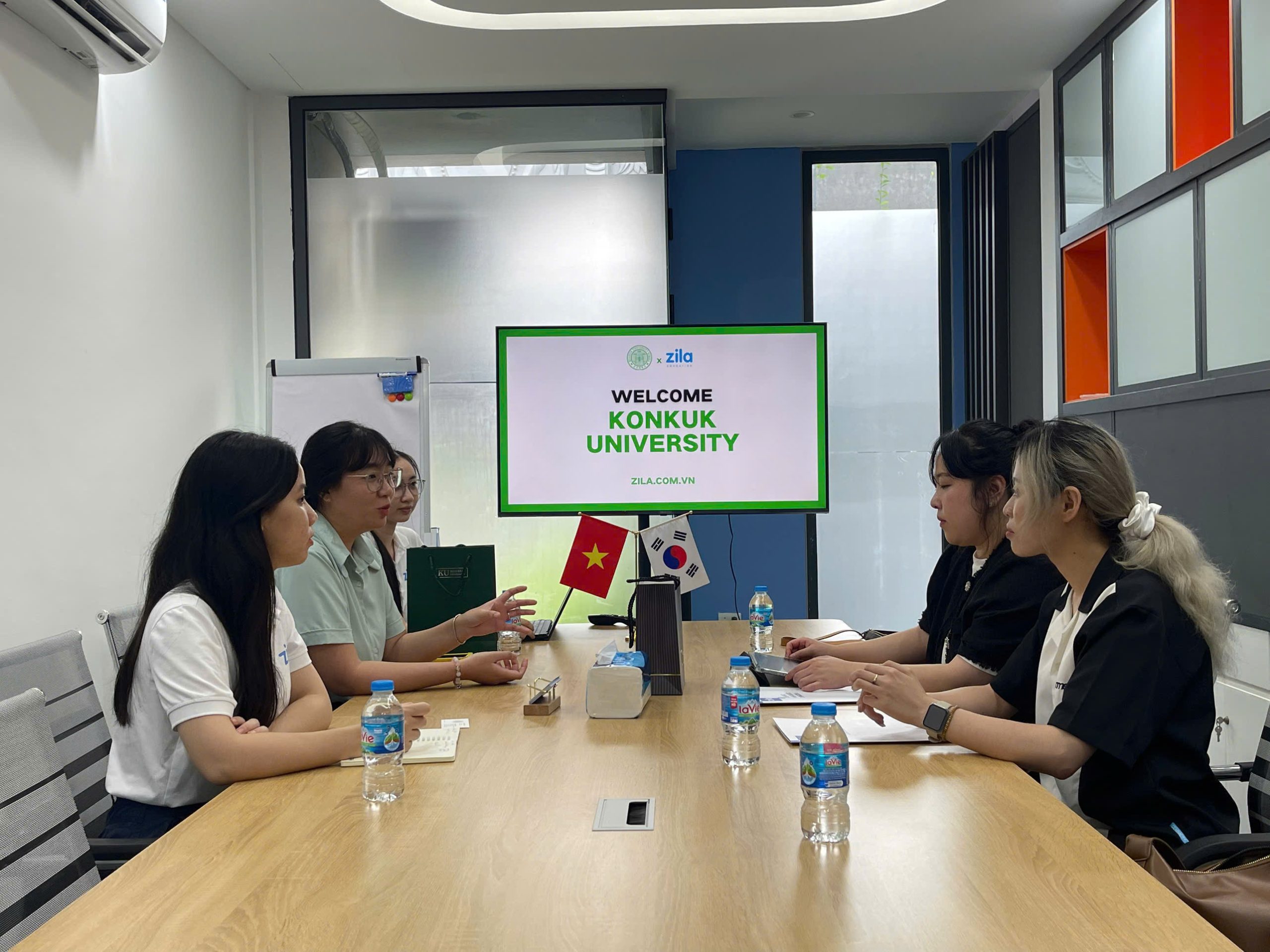 Tại buổi làm việc, cô Park Da Ae – Trưởng phòng Hành chính Viện ngôn ngữ Đại học Konkuk – cùng các đại diện nhà trường đã trao đổi cùng Zila về: