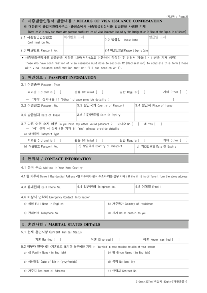 • Đơn xin cấp visa Hàn Quốc song ngữ Anh – Hàn
