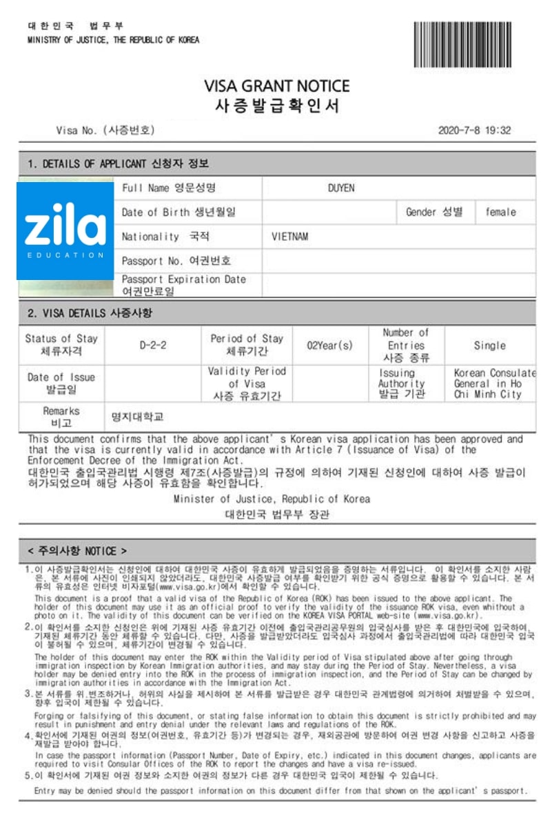 ∗ Từ ngày 01/07/2020, Đại Sứ Quán/Lãnh Sự Quán Hàn Quốc sẽ không dán nhãn Visa vào hộ chiếu. Thay vào đó là cấp “Giấy xác nhận cấp Visa”.
