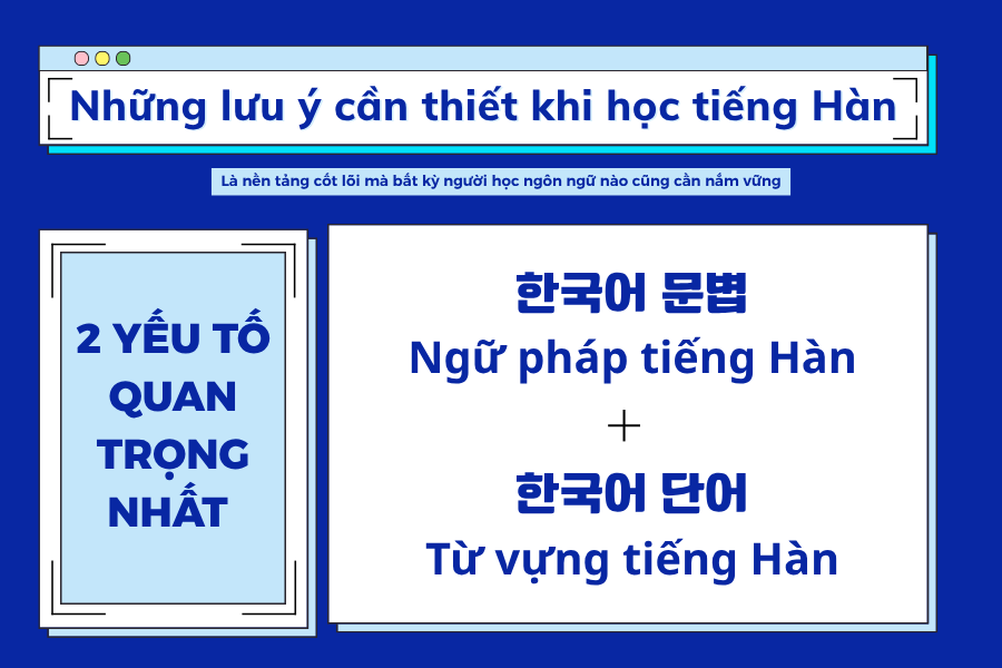 Đối với bản thân em, hai yếu tố quan trọng nhất trong quá trình học tiếng Hàn là từ vựng và ngữ pháp. Đây là nền tảng cốt lõi mà bất kỳ người học ngôn ngữ nào cũng cần nắm vững. Nếu thiếu vốn từ vựng, người học sẽ không thể hiểu nội dung cũng như diễn đạt ý kiến của mình một cách chính xác. Bên cạnh đó, ngữ pháp đóng vai trò định hình cấu trúc câu và giúp truyền tải ý nghĩa một cách rõ ràng.