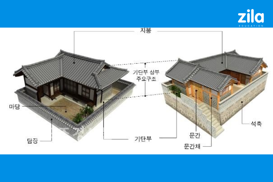 Cấu trúc nhà Hanok được chia thành 4 khu: