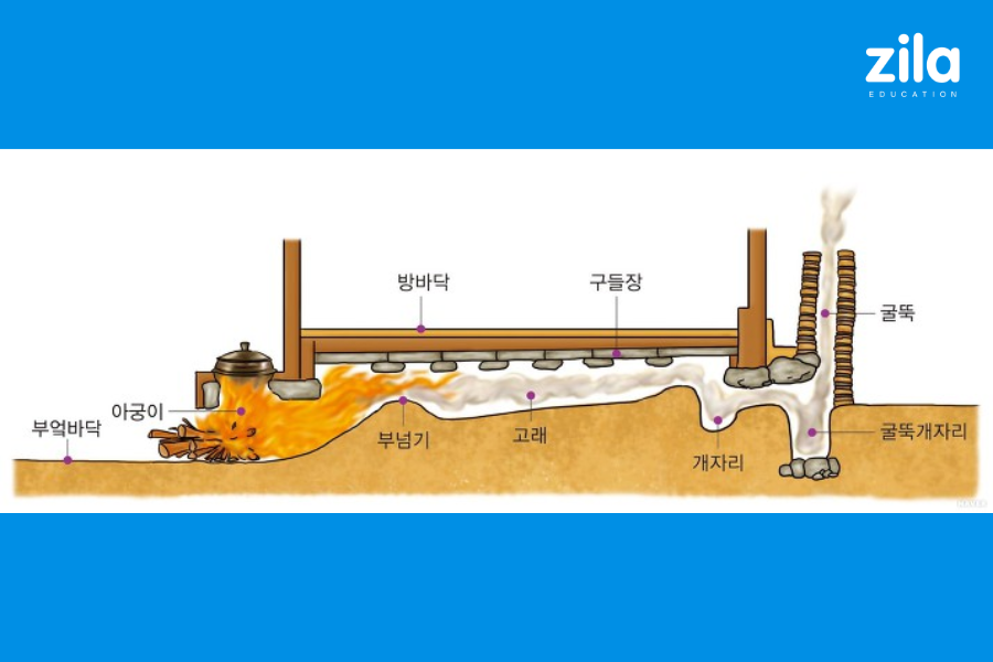 Những ngôi nhà Hanok được xây dựng với hệ thống Ondol có các kênh bên dưới sàn đá với nhiều khoan thông khí kết nối với lò bếp. Vào mùa đông, khí nóng chạy qua các khoan này sưởi ấm nền nhà. Ondol cũng được thiết kế để hút khói từ lò bếp và thoát khí ra bên ngoài.
