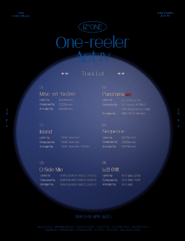 IZ*ONE có 12 thành viên, bao gồm: Kwon Eunbi, Miyawaki Sakura, Kang Hyewon, Choi Yena, Lee Chaeyeon, Kim Chaewon, Kim Minju, Yabuki Nako, Honda Hitomi, Jo Yuri, Ahn Yujin và Jang Wonyoung.