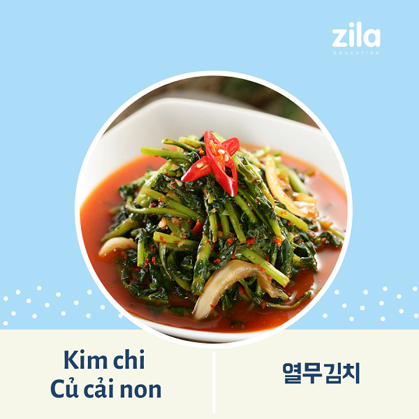 Kim chi Củ cải non (열무김치) được làm chủ yếu bằng củ cải. Nhưng một điểm đặc biệt của món Kim chi này là chỉ sử dụng phần lá của củ cải. Củ cải non là loại rau xanh, có cuống nhỏ, được dùng nhiều vào mùa hè. Kim chi củ cải non được muối tương tự như những loại kim chi truyền thống khác. Tuy nhiên thời gian lên men của củ cải non khá nhanh nên không bảo quản được lâu.