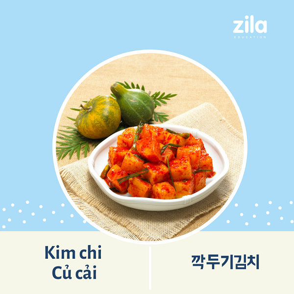 Kim chi Củ cải (깍두기김치) được yêu thích bởi hương vị giòn tan, cay nồng chua thanh, phù hợp với khẩu vị của nhiều người. Nguyên liệu chính là củ cải, gia vị cũng tương tự như Kim chi cải thảo. Tại Hàn Quốc củ cải có thể được trồng quanh năm nhưng vào mùa Đông củ cải ngọt và ngon nhất.