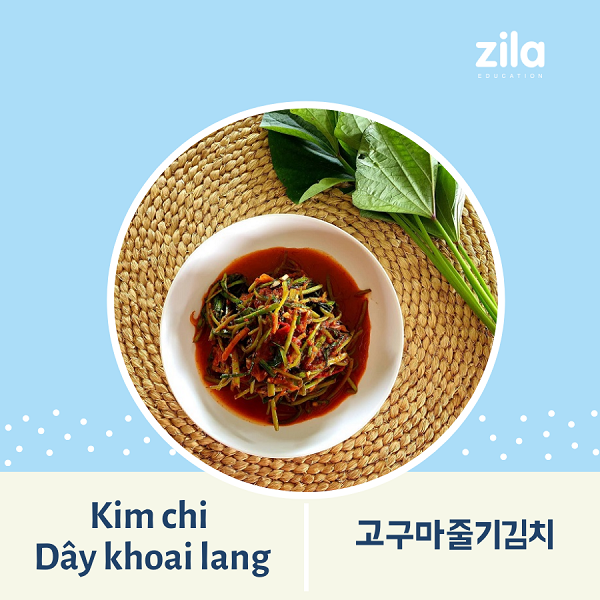 Kim chi Dây khoai lang (고구마줄기김치) là một loại Kimchi khá đặc biệt. Bởi vì được làm tự cọng khoai lang (phần nối với lá khoai lang). Khác với cách người Việt chúng ta hay ăn là ngọn hoặc thân của cây khoai lang. Khoai lang rất khó phát triển trong thời tiết lạnh vào muà đông của Hàn Quốc. Do đó đa phần loại kim chi này được dùng chủ yếu vào mùa hè.