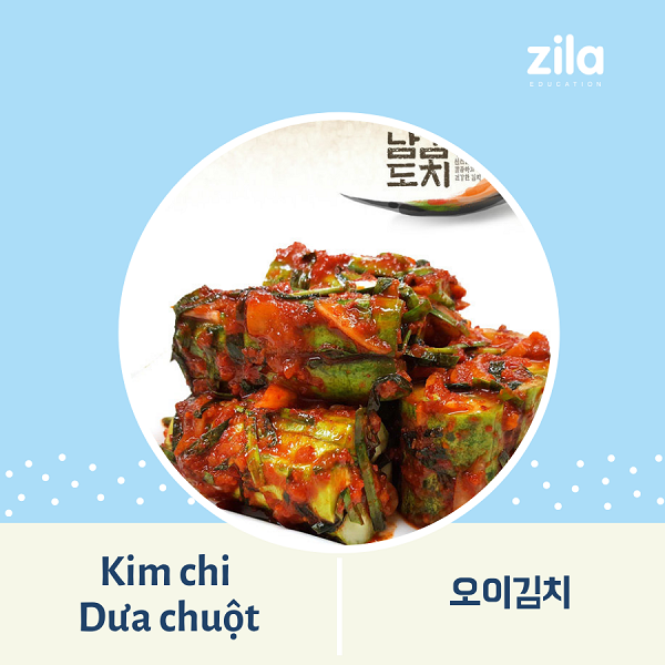 Kim chi Dưa chuột (오이김치) là loại kim chi phổ biến nhất vào mùa xuân và mùa hè. Bởi vì hương vị của Kim chi rất thanh mát, phù hợp với những món ăn giải nhiệt. Với đặc điểm giòn và nước cốt tươi mát, Kim chi dưa chuột được làm bằng cách lên men dưa chuột với các loại quả dễ chua.