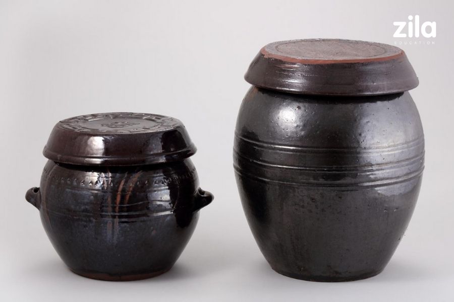 Kim chi sẽ lên men và tạo ra một hương vị rất tuyệt vời. Tùy theo loại Kim chi và thời gian bảo quản mà người ta dùng những loại hũ, chum vại khác nhau. Một số loại thường dùng là dok (독), jangdokdae (장독대), hangari (항아리) và bataenggi (바탱이).