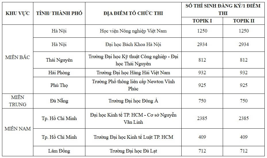 ĐỊA ĐIỂM THI TOPIK 2026 (MỚI NHẤT)