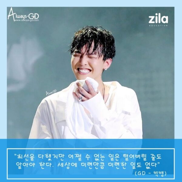 “최선을 다했지만 어쩔 수 없는 일은 털어버릴 줄도 알아야 한다. 세상에 미련만큼 미련한 일도 없다” – 지드래곤 (빅뱅)
