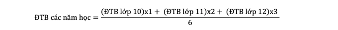 Điểm TB 3 năm THPT: được tính bằng điểm trung bình cộng của tất cả môn học được đánh giá bằng điểm số ở lớp 10, 11, và 12.