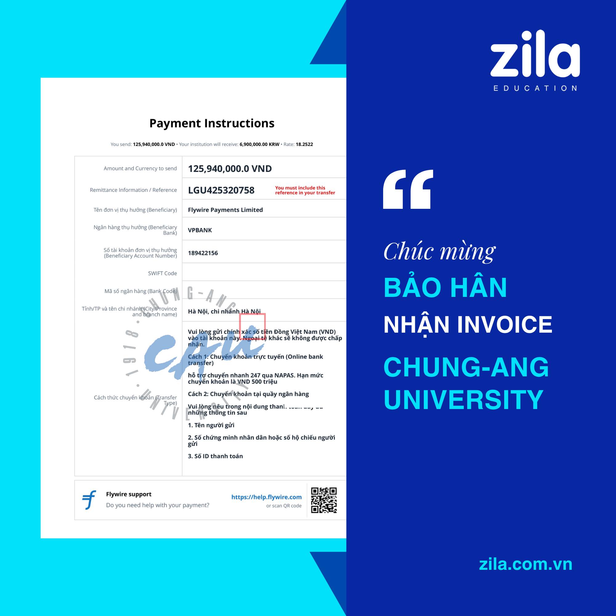 Hiện Zila đang là đại diện tuyển sinh chính thức của trường Đại học Chung Ang Hàn Quốc tại Việt Nam Đăng ký tư vấn ngay để Zila có thể hỗ trợ bạn mọi thông tin du học nhanh nhất. |