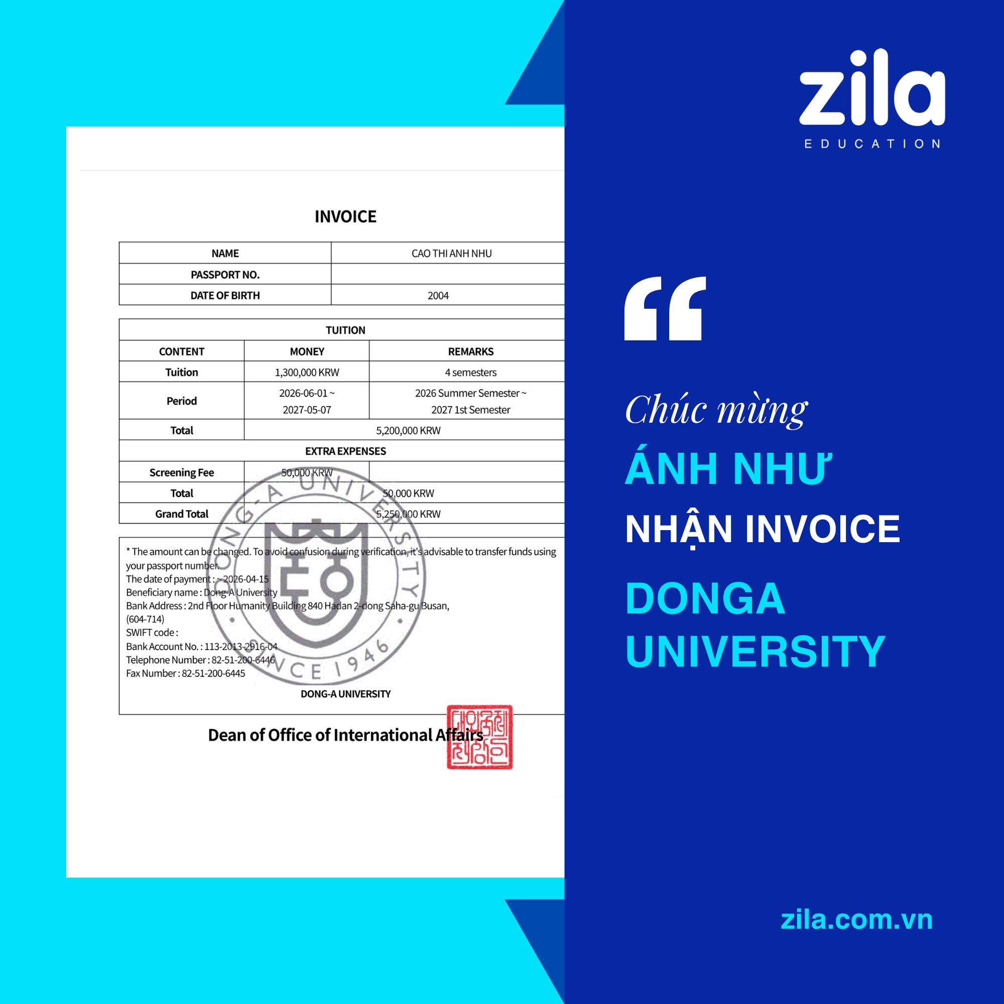 Hiện Zila đang là đối tác liên kết và tuyển sinh cho trường Đại học Dong A Hàn Quốc tại Việt Nam