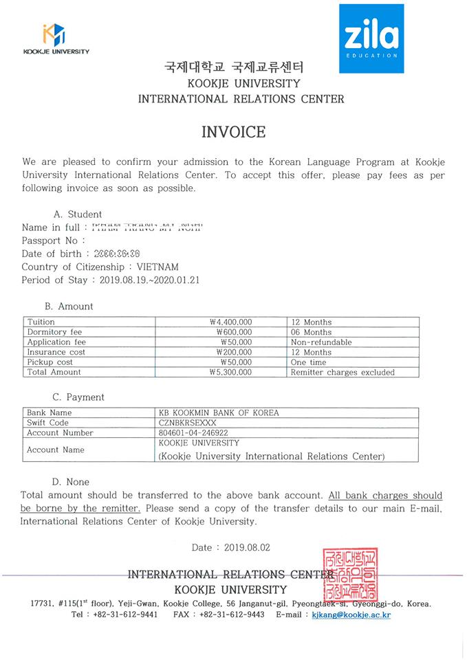 Hiện Zila đang là đối tác tuyển sinh cho trường Đại học Kookje tại Việt Nam