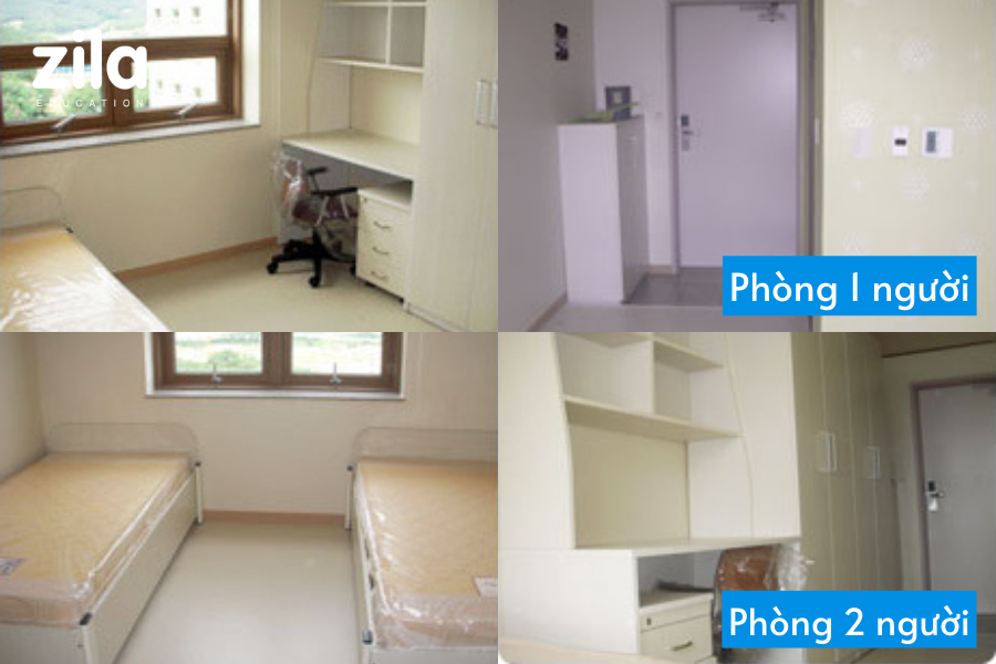 - Tiện ích trong phòng: internet, điều hòa, bàn học, tủ quần áo, giường và nhà vệ sinh, phòng tắm.