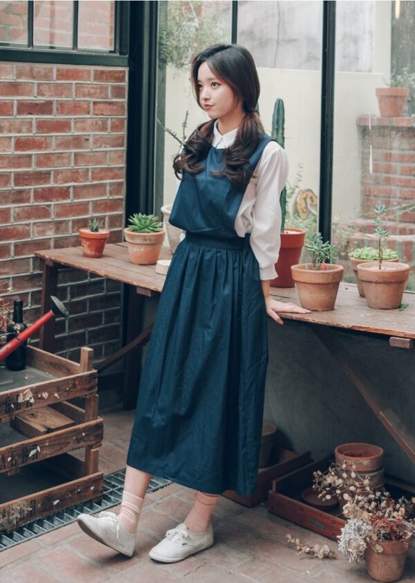 Phong cách ăn mặc Hàn Quốc mùa hè chẳng thể thiếu set đồ yêu kiều, tiểu thư như thế này. Tận dụng một chiếc áo phông trắng, mix cùng với váy yếm, nhìn vừa thanh thoát vừa đáng yêu. Set đồ này hợp với những cô nàng gầy gò lẫn mũm mĩm, che khuyết điểm cơ thể cực đỉnh.