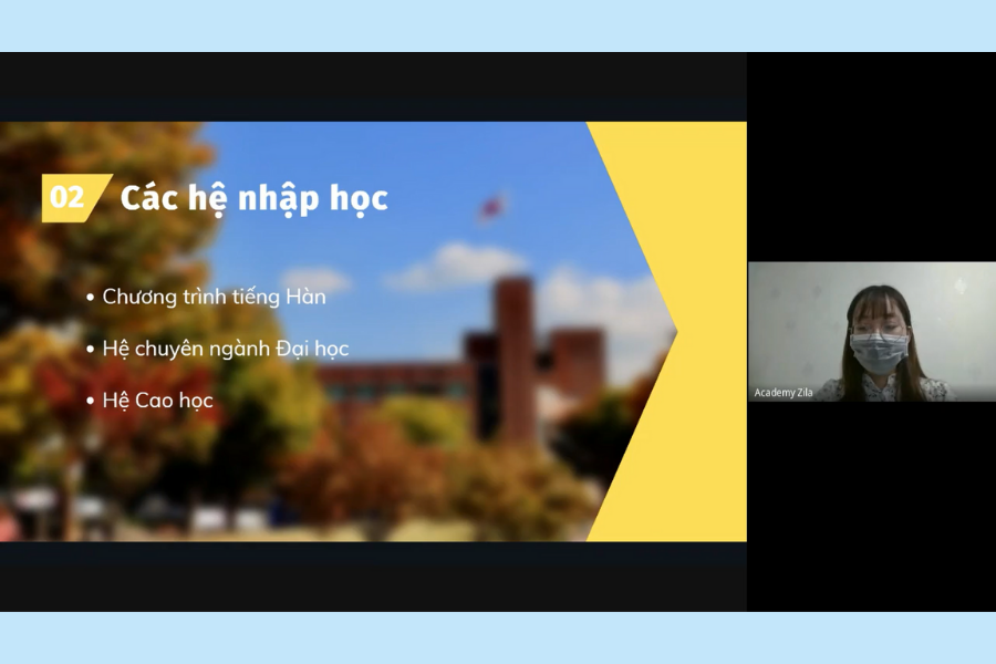 Host của chương trình Webinar lần này là chị Nhật Anh – nhân viên Zila. Chương trình mở đầu với phần giới thiệu về Zila và các dịch vụ chính tại trung tâm. Mong muốn của Zila là mang lại giải pháp toàn diện về du học Hàn Quốc cho DHS Việt Nam. Đến nay, Zila đã trở thành lựa chọn ưu tiên của nhiều bạn trẻ muốn du học Hàn Quốc.