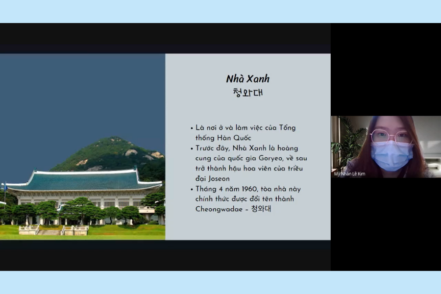 “Chuyến đi bổ não” bắt đầu từ Nhà Xanh (청와대), nơi ở và làm việc của Tổng thống Hàn Quốc. Đây là công trình mang đậm phong cách truyền thống của Hàn Quốc và nhiều giá trị lịch sử quý báu của quốc gia này. Các bạn học viên đã được lý giải về lịch sử và giới thiệu những gì có thể làm khi check-in tại Nhà Xanh. Ngoài ra, chị Trúc còn hướng dẫn các bạn cách đăng ký tham quan trên website của Nhà Xanh.