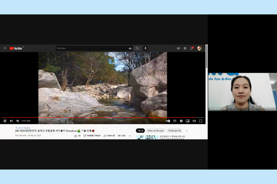 Ở phần tiếp theo, các bạn học viên Zila đã lắng nghe chị Mỹ Nhàn giới thiệu về những đặc điểm tự nhiên của Hàn Quốc. Đồng thời biết được những đặc điểm về thời tiết, địa hình đã tạo nên thế mạnh cho Hàn Quốc. Từ đó, giúp đất nước này trở thành một đế chế kinh tế du lịch vững mạnh như ngày nay.